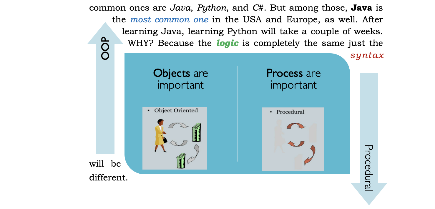- Java is an Object Oriented Programming Language.For example, in Starbucks, employees are not important because it created a perfect system. Even a kid can prepare perfect coffee. But in a traditional restaurant (Turkish Pide Restaurant) if the cooker is perfect, the pide will be perfect. In real life, the Starbucks system is the best but in coding, OOP is the best because it is possible to create perfect objects.Perfect objects will do perfect tasks. Because of that, in coding, we prefer Object-Oriented Logic.